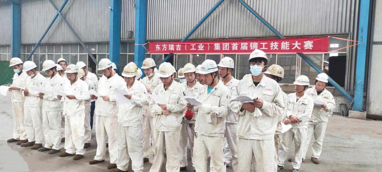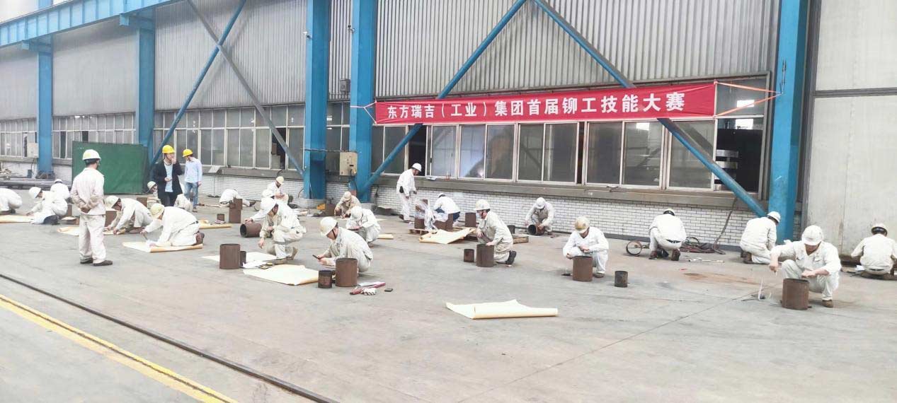 為強化技術(shù)水平,增強技術(shù)創(chuàng)新與活力,樹立技術(shù)標桿。9月16日上午9點東方瑞吉(工業(yè))集團在生產(chǎn)車間舉行了“2022年度鉚工技能比武大賽”。共有31名員工參加此次鉚工技能比武大賽。大賽要求參賽者在熟練掌握鉚工基礎(chǔ)知識和技能的基礎(chǔ)上,能看懂圖紙,能計算物料邊長,能根據(jù)工藝圖的技術(shù)要求制定裝配、焊接和矯正工藝方案,制作簡易工裝夾具,熟悉新技術(shù)、新材料、新工藝以及相關(guān)工種銜接的知識等。參賽選手不僅要在最短的時間內(nèi)完成操作,還要保證完成作品的美觀和質(zhì)量。