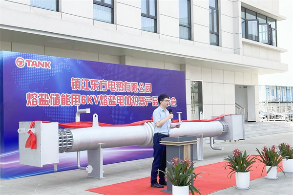 隨后,總工程師徐昆侖為此次發(fā)布會(huì)致辭并簡單介紹了產(chǎn)品情況,他指出是東方電熱始終秉承“創(chuàng)建電熱領(lǐng)先企業(yè),成就東方百年品牌”發(fā)展使命,此次產(chǎn)品是東方電熱全體人員潛心研究、凝聚而成的智慧結(jié)晶,解決了行業(yè)痛點(diǎn)并完美契合客戶需求。在國家雙碳的戰(zhàn)略目標(biāo)下,國內(nèi)風(fēng)力發(fā)電、太陽能光伏發(fā)電等代表的新能源裝機(jī)規(guī)??焖侔l(fā)展,但受自然環(huán)境影響,存在很強(qiáng)的波動(dòng)性和間歇性。由于用電需求的不平衡,電廠需要進(jìn)行削峰填谷、系統(tǒng)調(diào)頻處理。我司生產(chǎn)的6KV熔鹽電加熱器產(chǎn)品可讓電廠通過儲(chǔ)能的方式來進(jìn)行優(yōu)化調(diào)整,得益于其容量大、運(yùn)行靈活、投資和運(yùn)行成本低等特點(diǎn),該產(chǎn)品肩負(fù)起了電網(wǎng)調(diào)峰壓力、促進(jìn)穩(wěn)定運(yùn)行的重任。