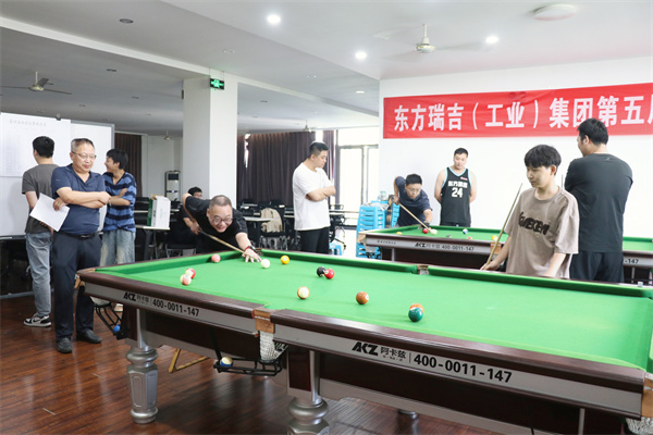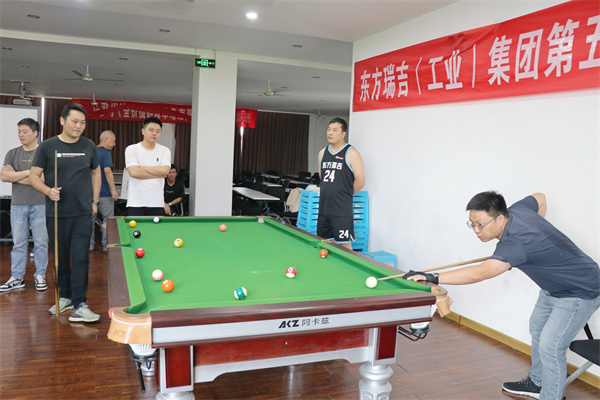 為豐富東方瑞吉(工業(yè))集團(tuán)員工業(yè)余文化生活,增進(jìn)員工間的友誼與交流,營造積極向上、健康生活的良好氛圍,展現(xiàn)拼搏進(jìn)取的精神風(fēng)貌。公司于8月10日上午8點(diǎn)15分舉行了第五屆員工臺球比賽。此次比賽共吸引26名員工參加。